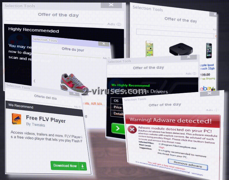 La nostra preoccupazione principale per questa applicazione è che il suo contenuto non produca annunci e offerte di alta qualità e sicure. I banner che vengono visualizzati possono portare a siti web, influenzati dagli hacker. Ciò significa che la tua breve visita in un dominio potrebbe finire con l’essere infettato da esemplari di malware. Poiché sei già infettato con l’adware Selection Tools, la sua attività ti renderà vulnerabile e ti esporrà a promozioni non sicure.