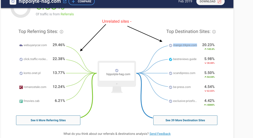 La ricerca mostra, che Hippolyte-Hag è usato per promuovere siti web loschi, come siti di recensioni false (che mandano persone a fare shopping in siti per avere commissioni di affiliazione senza alcuna recensione reale), siti di notizie / informazioni false che vendono prodotti di truffa o integratori e simili. È molto diverso dalle affermazioni sul sito web di Traffic Rocket in cui parlano di pubblicità di alta qualità. Alcuni dei siti Web promossi non sono più accessibili e causano errori.