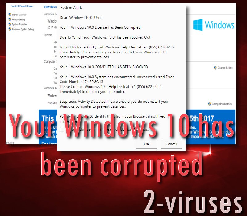 Il messaggio fraudolento della licenza di Windows 10 è stata corrotta è un messaggio di supporto tecnico che afferma che il sistema operativo Windows degli utenti è stato corrotto e le chiavi di registro sono impossibili da trovare. Il sistema è stato bloccato a causa di problema con la licenza. Per risolvere il problema, la truffa tecnica chiede alle persone di inserire i loro user name e password o di chiamare il numero di telefono 855-622-0255. Questa truffa è molto simile alle notifiche rogue come “Il tuo Windows è in grave pericolo” e “Avviso di allerta del Firewall di Windows”.